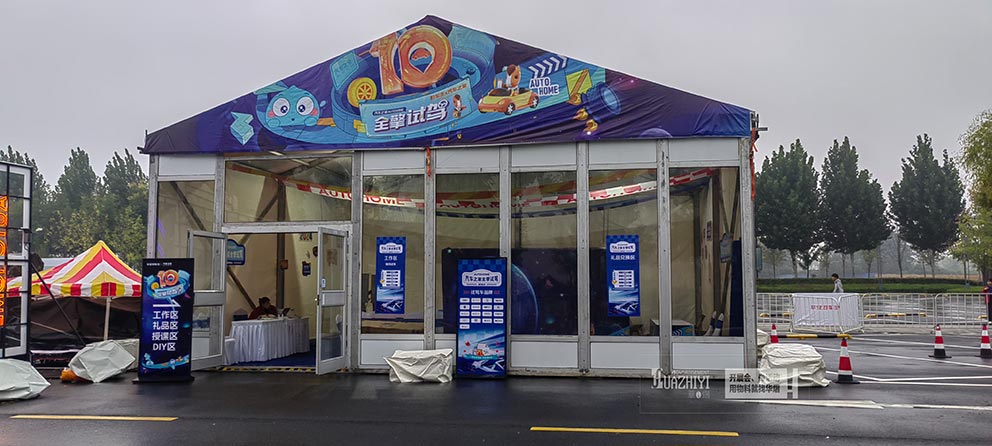 活動(dòng)現(xiàn)場(chǎng),一座寬敞明亮的篷房拔地而起,不僅有效抵御了夏日炎炎的烈日,更為試駕活動(dòng)營(yíng)造了一個(gè)既專業(yè)又舒適的環(huán)境。篷房?jī)?nèi)部分區(qū)明確,既有展示區(qū)讓嘉賓近距離感受新車魅力,也有試駕體驗(yàn)區(qū)讓參與者親身駕馭,感受速度與激情。此外,篷房的外墻裝飾與汽車之家的品牌形象完美融合,彰顯出品牌的高端與格調(diào)。