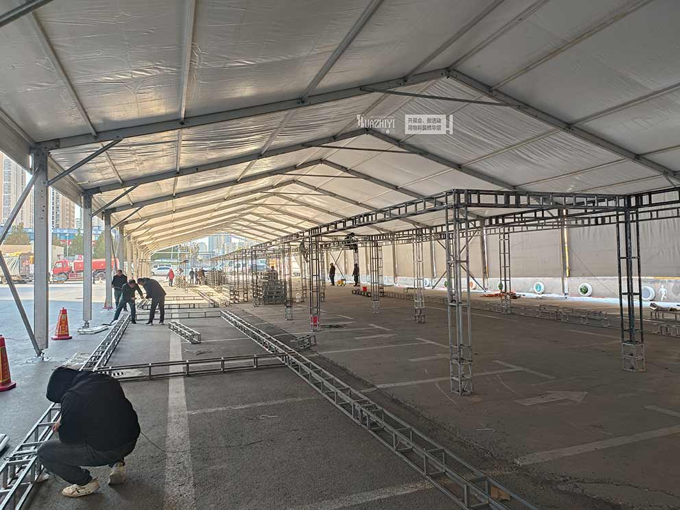 活動篷房本身具有搭建簡便、拆卸快捷、空間靈活等優(yōu)點,適合作為臨時展覽、會議、慶典等活動的場所。而篷房內(nèi)搭建桁架展位,則可以在有限的空間內(nèi)創(chuàng)造出更多的展示區(qū)域,滿足參展商對展位的需求。
